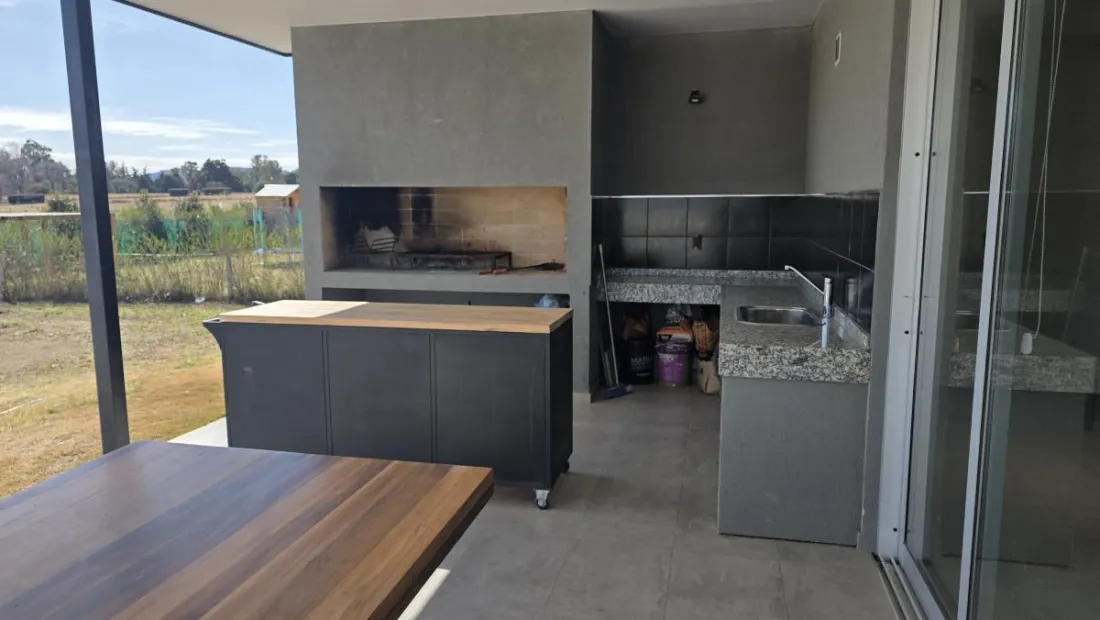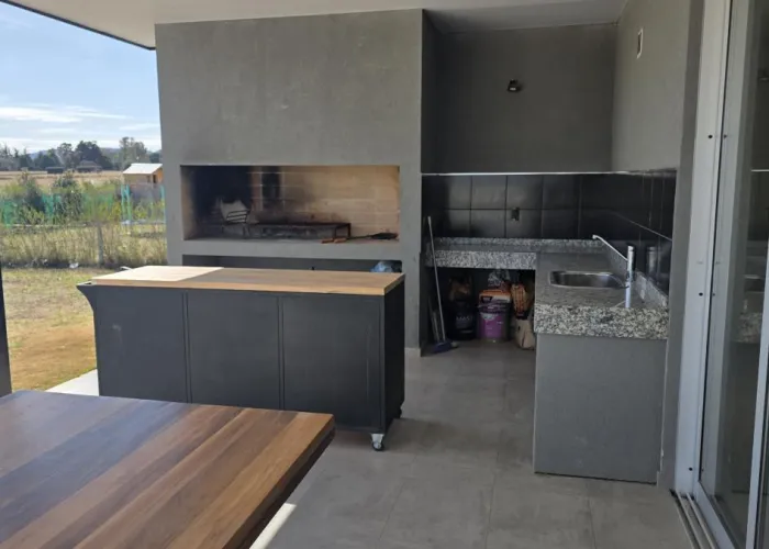 - Galería tipo quincho techada con asador